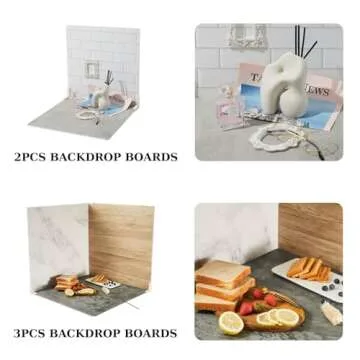 Show more Discover the ultimate photography companion with our innovative Photo Studio Backdrop. This set includes five versatile backdrop boards featuring a stunning 10 unique patterns, providing the perfect solution for photographers, content creators, and small businesses looking to elevate their photo shoots. Each board is designed to enhance your creative endeavors, whether you're capturing delicious food, chic cosmetics, or elegant jewelry. The artistic patterns also serve as an inspiration for anyone engaged in tabletop photography.