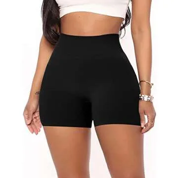 eoeoo Women's Athletic Butt Lifting Shorts Seamless Workout Scrunch High Waist Gym Yoga Biker Shorts Black Small