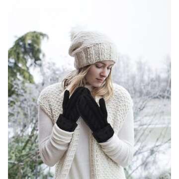 Eohak Winter Warm Mittens for Women - Knit Gloves Soft Wool Thick Fleece Lining Mittens