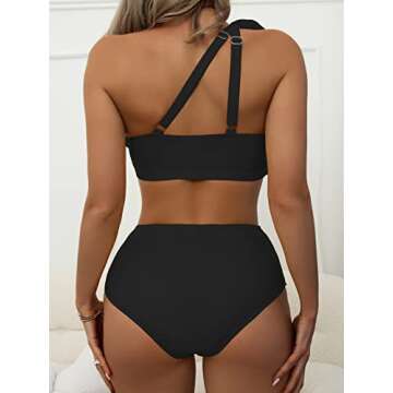 Eomenie Women One Shoulder Ruffle Two Piece Swimsuits High Waisted Tummy Control Bikini Sets 2 Piece Bathing Suits Black