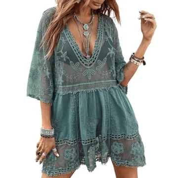 Eomenie Women's Lace Bathing Suit Cover Up - V-Neck Green Beach Dress