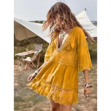 Why You Will Love This Product: This beautiful cover-up is more than just a fashion item; it embodies a carefree attitude toward summer fun. The Eomenie Women's Contrast Lace Bathing Suit Cover Up empowers you to lounge by the poolside confidently, showing off your personality through exquisite style. Every time you slip it on, you'll feel the soft fabric on your skin, the flow of the dress dancing with the summer breeze, and the compliments rolling in from onlookers. It truly elevates your beach experience while ensuring maximum comfort!
