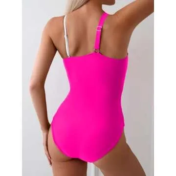 Show moreIntroducing the Eomenie Women's One Piece Tummy Control Swimsuit, a perfect blend of elegance and functionality designed for women who seek both style and comfort at the beach or by the pool. This stunning one-shoulder swimsuit features a beautiful color block design that not only highlights your curves but also showcases your unique personality. Crafted with soft removable bra pads and wired bra construction, it ensures a secure fit while enhancing your natural shape. Full coverage allows you to swim confidently, making it an essential wardrobe addition for summer outings.