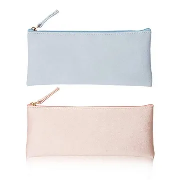 EONMIR PU Leather Pencil Case - Versatile Makeup & Stationery Pouch in Blue and Pink