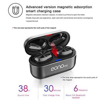 Introducing the Eonome W5s True Wireless Earbuds: your ultimate audio partner for every adventure! Equipped with the latest Bluetooth 5.3 technology, these earbuds provide a lightning-fast connection that ensures seamless audio and crystal-clear calls within a transmission range of up to 15 meters. The intelligent charging case allows for effortless charging, activating automatically when the case is closed, giving you an impressive 24 hours of music or talk time...