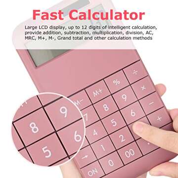 ... Show more The EooCoo Basic Standard Calculator is not just a tool; it's a perfect blend of functionality and style, designed to meet the needs of various users. Crafted from durable ABS material, this calculator comes in several fashionable colors like white, pink, and green, allowing it to fit into any workspace aesthetic. The large LCD display featuring a 12-digit interface ensures easy readability, making it ideal for quick calculations at home, in the office, or even at school.