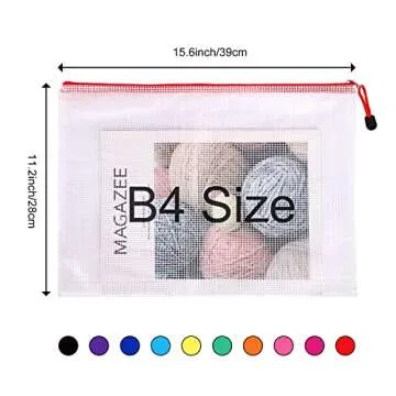 Show moreIntroducing the **EOOUT 20pcs Large Mesh Zipper Pouch Bags**, your ultimate solution for organizing and storing a wide variety of items with style and efficiency. Available in **10 vibrant colors**, including red, yellow, green, light blue, blue, violet, black, rose, orange, and pink, these pouches help you keep your belongings neatly sorted while adding a pop of color to your organization efforts. Sized at **15.4" x 11"** (39cm x 28cm), these bags are larger than typical B4-sized paper, ensuring they can accommodate everything from documents to makeup essentials.