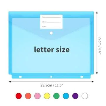 Show more Introducing the perfect organizational solution for students, professionals, and anyone looking to keep their documents in order—our premium 24 pack binder pockets. Measuring at an impressive 8.6 x 11.6 inches, these binder organizer folders are designed to fit into standard 3-ring binders. Crafted from high-quality, clear thick plastic, they not only provide exceptional durability but are also waterproof, ensuring that your documents remain protected from spills and accidents. Each pocket can comfortably hold up to 50 sheets of paper, making them perfect for all types of document storage.