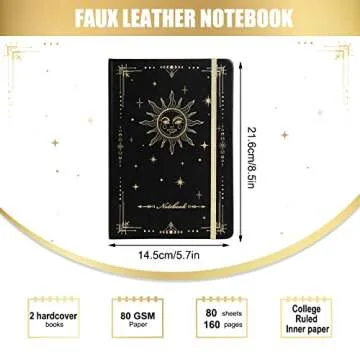 EOOUT Journals for Writing, 2 Pack Journal, A5 Hardcover Ruled Journal Notebook, Journals for Writing Women, 160 Pages, Faux Leather, 5.7 x 8.5 Inches, Stamped Moon Sun Lined Notebook with Pocket