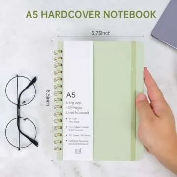 Show moreIntroducing the EOOUT Spiral Journal Notebook, where elegant design meets exceptional functionality. This A5-sized (5.5 x 8 inches) spiral notebook features a robust hardcover that not only protects your notes but also adds a touch of sophistication with its minimalist light green aesthetic. With 160 pages crafted from high-quality 80 gsm paper, you can expect a smooth writing experience. This notebook is perfect for a variety of writing instruments, including ballpoint pens, gel pens, and even fountain pens without any worry of ink bleed-through. Whether you're in a classroom, a meeting, or on the go, this notebook is designed to keep your thoughts organized and readily accessible.