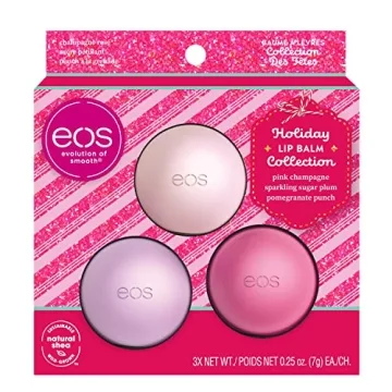Show more Get ready to celebrate the season with **EOS Limited Edition Holiday Lip Balm Trio**! This delightful 3-pack brings together three tantalizing flavors: **Pink Champagne**, **Sparking Sugar Plum**, and **Pomegranate Punch**. Each balm is designed to elevate your lip-care routine while encapsulating the festive spirit in a chic, portable package. Whether you're treating yourself or gifting a loved one, these lip balms promise to add a touch of joy and hydration to anyone’s day.