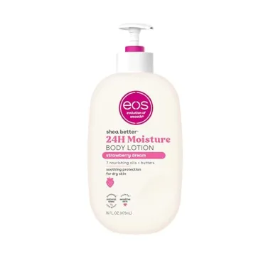 Show moreExperience the luxurious hydration of eos Shea Better Body Lotion in Strawberry Dream. This 24-hour moisture lotion is designed to soothe and protect your skin with its lightweight, non-greasy formula that leaves no sticky residue. Infused with the delightful scents of sparkling strawberry, pink sugar, and vanilla cream, it transforms your daily skincare routine into a sensory delight. Made with sustainably-sourced, 100% natural shea butter and enriched with 7 nourishing oils + butters, it ensures your skin feels moisturized, protected, and soft all day long. Perfect for those who value sustainable skin care, this lotion is paraben, phthalate, and gluten-free, dermatologist-recommended, vegan, hypoallergenic, and cruelty-free.