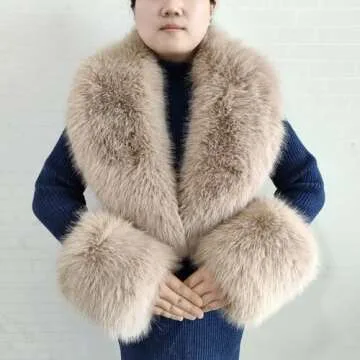 Eosxrp Faux Fur Collar Cuffs Set Warm Fake Fur Scarf Winter Women Fluffy Large Shawl Furry Scarves (khaki-set), 02