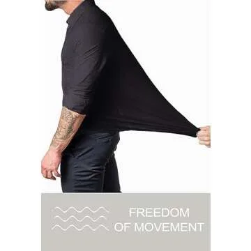 Show more This remarkable EOUOSS Men's Muscle Fit Dress Shirt is the epitome of style and comfort in one package. Crafted from a unique blend of soft stretch fabric, this shirt is designed to enhance mobility while ensuring a sleek appearance. The fabric fits all body types with exceptional elasticity, making it ideal for any occasion. Whether you're heading to the office or out for a night on the town, this shirt is bound to impress. Its classic solid color adds versatility, while the slim fit cut gives you a silhouette that exudes confidence and refinement.