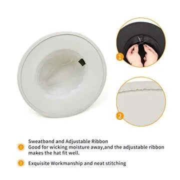 EOZY Women's Vintage Pearl Band Fedora Hat Trendy Wide Brim Trilby Panama Hat/White