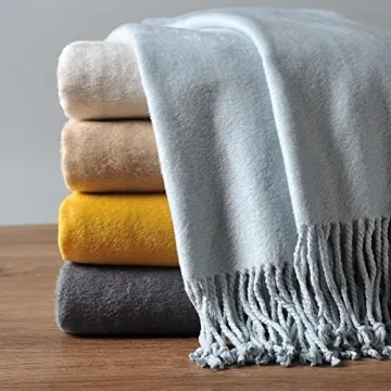 EP Mode Fringed Mulberry Silk Throw Blanket for Sofa (Baby Blue)