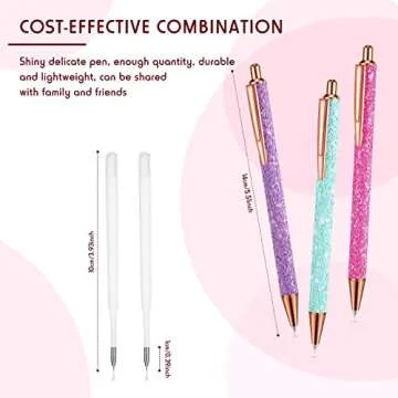 Show more Introducing the perfect addition to your crafting toolkit: the exquisite Bling Vinyl Weeding Pen Set! This set features three stunning weeding tools that are not only aesthetically pleasing, but also incredibly functional. Made from durable stainless steel, these pens are designed to withstand the rigors of daily crafting while remaining rust-resistant and long-lasting. Each pen measures approximately 14 cm (5.51 inches) in total length, with a comfortable grip that mimics the feel of a typical ballpoint pen. The pointed tip allows for precision use, making every crafting project a breeze.