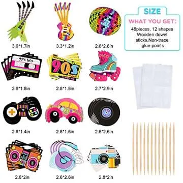 Experience the joy of creating your own gorgeous desserts with ease! The cupcake toppers are remarkably simple to assemble. Just apply the provided glue dots to the decorative cards, attach the bamboo sticks, and voilà! You have chic and fun 90s cupcake toppers ready to elevate your treats. This fun assembly process makes for a great bonding activity with friends or family, perfect for reminiscing over shared memories of the era!