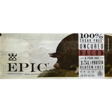 Show moreIntroducing the Epic All Natural Meat Bar in Bacon flavor, a revolutionary snack that perfectly captures the essence of bacon bliss, available anytime you desire. Each bar is crafted from premium, all-natural ingredients and is 100% sugar-free, making it not only a delicious choice but also a healthy one for those on the go. This 1.5 Oz wonder is perfect for any occasion, enabling you to indulge your cravings without derailing your health goals. Whether you're at your desk, on a hike, or simply craving a protein boost, this meat bar promises to satisfy your taste buds and keep you energized throughout the day. Experience the exciting balance of flavor and nutrition with every bite, all while staying committed to a paleo-friendly diet.