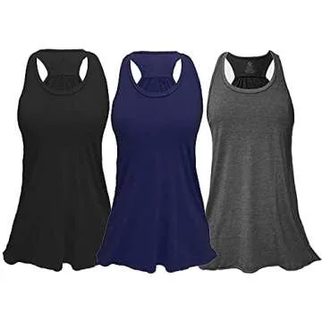 Epic MMA Gear Flowy Racerback Tank Top, Regular and Plus Sizes, Pack of 3 (L, Navy/Grey/Black)