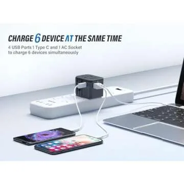 EPICKA Universal Travel Adapter One International Wall Charger AC Plug Adaptor with 5.6A Smart Power and 3.0A USB Type-C for USA EU UK AUS (TA-105, Space Gray)