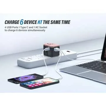 EPICKA Universal Travel Power Adapter - All in One Worldwide Wall Charger AC Plug Adaptor with 5.6A Smart Power and 3.0A Type-C for USA EU UK AUS (TA-105, Rose Gold)