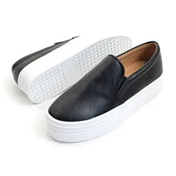 EpicStep Women's Black Casual Simple Slip-On Mid Heels Thick Soles Platform Shoes Low Fashion Sneakers 7.5 M US