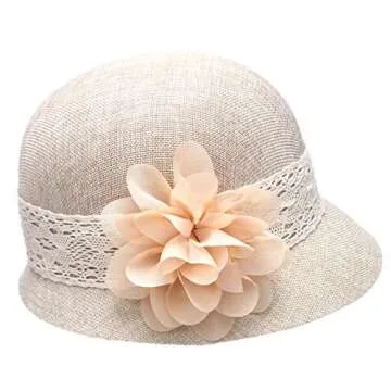 EPOCH Women's Gatsby Linen Cloche Hat with Lace Band and Flower - Natural