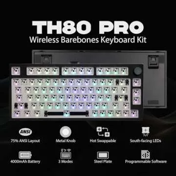 EPOMAKER TH80 Pro Wireless Barebones Keyboard Kit, 75% Hot Swap Mechanical Keyboard Kit, Bluetooth 5.0/2.4GHz/Wired RGB Gaming Keyboard, South-Facing LEDs for Win/Mac/PS5/PS4/Xbox (Black)