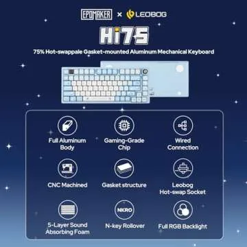 Show moreIntroducing the EPOMAKER x LEOBOG Hi75 Wired Gaming Keyboard, a state-of-the-art mechanical keyboard that redefines efficiency and control for gamers and typists alike. Designed with a sleek 75% layout, this compact keyboard features 81 essential keys that strike a perfect balance between functionality and minimalist design. Whether you’re battling opponents in a gaming marathon or typing up your next big project, the Hi75 enables you to access every key you need without cluttering your workspace. The thoughtful GASKET design, bolstered with PORON gaskets, minimizes sound resonance, delivering an acoustic experience that enhances every keystroke.