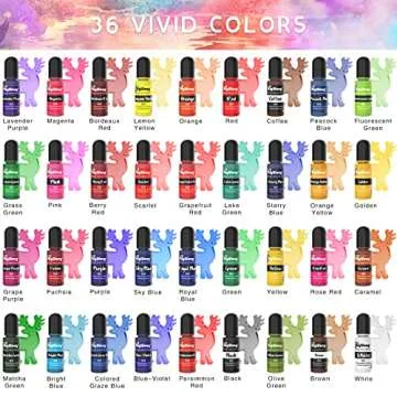 Show more Unleash your creativity with our Epoxy Resin Pigment - 36 Color Liquid Translucent Colorant. This versatile collection features a stunning 36 colors of liquid epoxy pigment, including delightful hues like Caramel, Grape Purple, Peacock Blue, and Starry Blue. Each 6ml bottle is packed with concentrated dye, ensuring that just a drop or two can transform your resin projects into vibrant works of art. The translucent nature of these pigments allows for stunning layering effects, perfect for achieving any desired look in your crafts.