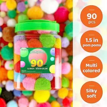 Eppingwin 90PCS Multicolor Pom Poms,1.5 Inch Soft Pompoms for Crafts, Assorted Colors 4CM Big Pom Pom for Arts & Crafts DIY Projects (Multi-Colored)