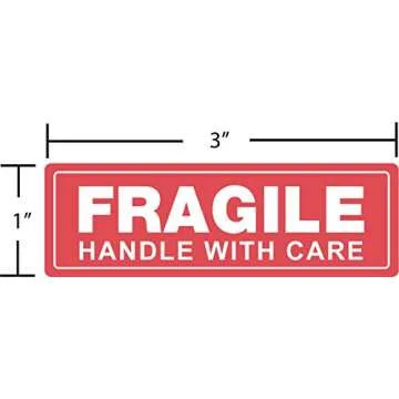 EPS Fragile - Handle with Care Shipping Stickers, 1"x3", 1000 Per Roll (1 Roll)