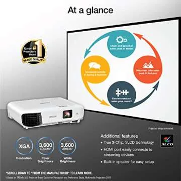Epson EX3280 3-Chip 3LCD XGA Projector, 3,600 Lumens Color Brightness, 3,600 Lumens White Brightness, HDMI, Built-in Speaker, 15,000:1 Contrast Ratio ()