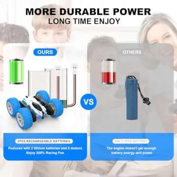 Equipped with two powerful electric motors and high-quality rubber tires that provide excellent shock absorption and grip, you can race indoors or outdoors without worrying about performance. The cutting-edge remote control technology allows for a seamless racing experience, enabling you to perform stunts and flips at the push of a button. Get ready to amaze your friends and family with your RC car's stunning tricks!