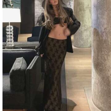 Eqnonrx Women Sexy 2 Piece Crop Top and Maxi Skirt Set