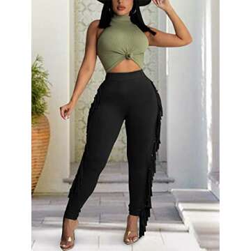 Show moreDiscover the perfect blend of style and comfort with the EQQZD Women's Fringe Pants. These casual high waist solid bodycon sweatpants are not just a wardrobe essential; they exemplify versatility in your day-to-day attire. Crafted from a soft, durable fabric, you'll appreciate their remarkable stretch and fit that conforms to your body without compromising comfort. Whether you're lounging at home, hitting the yoga mat, or dressing up for a casual outing, these pants have you covered with their chic side tassel design. Available in classic black, they add a trendy touch to any outfit!