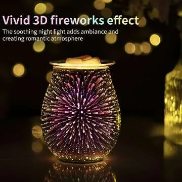 EQUSUPRO 3D Glass Electric Wax Melts Warmer - Stunning Fireworks Effect for Relaxing Aroma