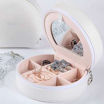 Equuleus Travel Jewelry Box for Women (WHITE) Portable Jewelry, Earring Holder and Ring Storage Case with Compartment Organizer