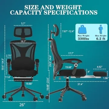 - Solid Stability: With a sturdy SGS-certified frame that supports up to 330lbs, this chair ensures no wobbles or squeaks, providing a reliable seating experience.