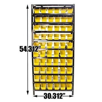 Erie Tools TLPB60 60 Parts Bin Shelving Organize with Plastic Bins for Garage, Shop, and Home Storage