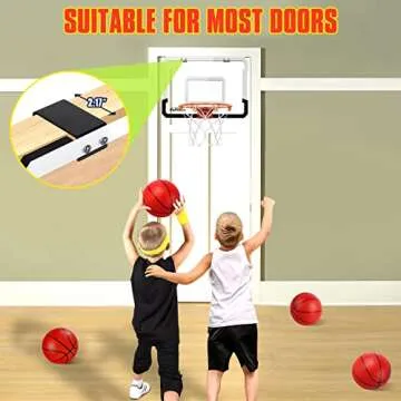 Erixazs Over The Door Basketball Hoop with 4 Balls, Indoor Mini Basketball Hoop Basketball Backboard Pads Mini Hoop for Kids and Adults, Door Room Basketball Hoop Basketball Toys