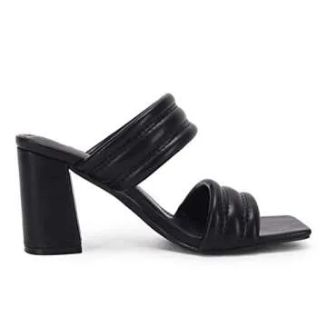 Ermonn Womens Chunky Block Heeled Sandals Two Strap High Heels Black Square Open Toe Slip On Backless Slide Summer Mules 7