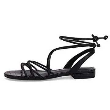 Ermonn Womens Wrap Flat Sandals Low Heel Slip On Open Toe Strappy Fashion Beach Sandal