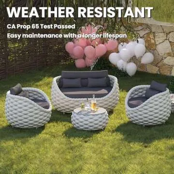 Engineered with a reinforced rust-free aluminum alloy frame and wrapped in hand-woven polyester rope, this furniture set is designed to withstand the elements. Its all-weather upholstery resists UV rays, rain, wind, and even saltwater exposure, ensuring it remains stunning in a variety of climates—ideal for arid regions and coastal areas alike. Embrace durability without compromising style!