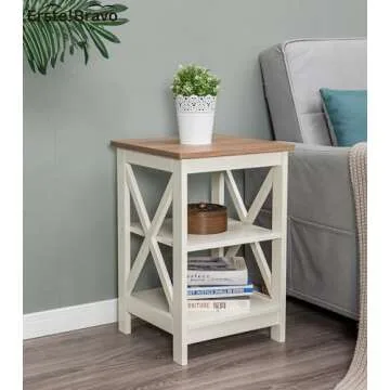 Erste!Bravo Farmhouse End Tables Living Room Set of 2, 3-Tier Modern Side Tables with Storage Small Wood Look Rustic Bedroom Nightstands Set of 2 for Living Room, Bedroom, Office, Ivory+Oak