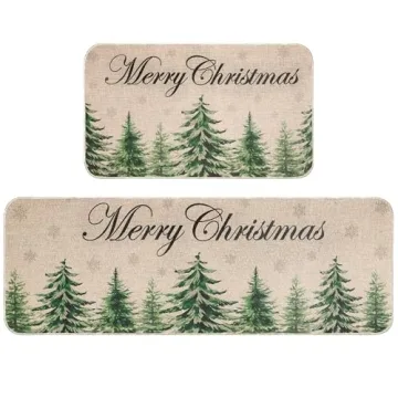 Show moreBring the spirit of the holidays into your home with the Erweicet 2 Pcs Christmas Kitchen Rug and Mat Set. Perfectly sized at 17" x 29.2" and 17" x 47.3", these mats effortlessly fit into any entryway, kitchen, or living area, elevating your festive decor game. Crafted from quality polyester felt and featuring a durable rubber backing, these mats are designed for long-lasting use while minimizing the risk of slips and trips. Their captivating snow and green Christmas tree design is not only practical but also serves as a beautiful enhancement for your holiday celebrations.