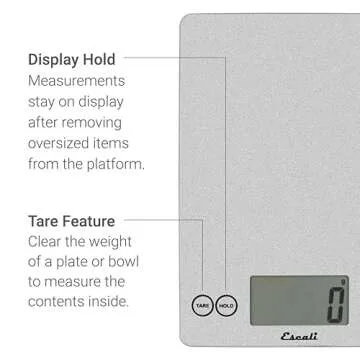 Escali Arti Glass Food Scale Digital Countertop Kitchen, Baking and Cooking Scale with Nutrition and Calorie Counter, 15-Pound Capacity, 9" x 6.5" x .75", Shiny Silver
