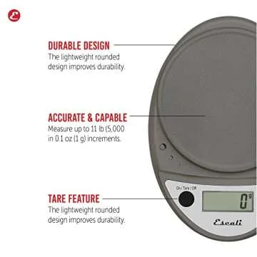 Escali Primo Digital Food Scale Multi-Functional Kitchen Scale and Baking Scale for Precise Weight Measuring and Portion Control, 8.5 x 6 x 1.5 inches, Metallic