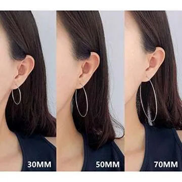 Show moreIntroducing the ESMATOO Thin Silver Hoop Earrings for Women, a perfect blend of elegance and comfort. Crafted for those who appreciate quality jewelry, these large 70mm hoops are more than just a stylish accessory; they embody a classic charm that complements any ensemble. Designed with a dainty silhouette, these earrings make a statement without overwhelming your look. The hypoallergenic properties ensure that even those with sensitive ears can enjoy the beauty of these earrings without discomfort.